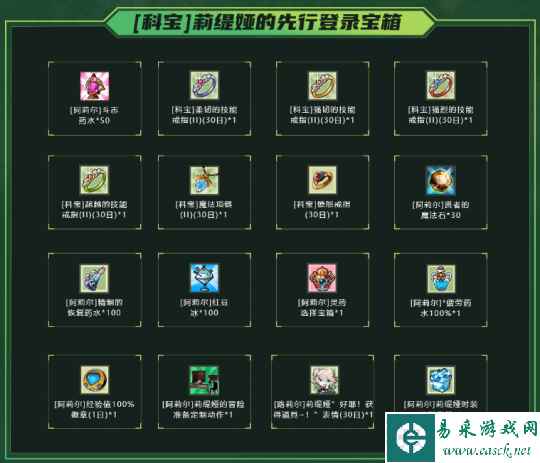 预约期间:12月13日-2024年1月2日10:00 预约方式: 1、官网预约 进入官网的预约页面,点击“立即预约”按钮,登录或者注册账号,即可成功完成预约。 2、微信预约 关注《艾尔之光》官方微信公众号(elsword2013),点击公众号下方菜单“艾尔-新角色预约”,进入预约页面,登录或注册账号即可成功完成预约。 两种方式选择其中一种进行预约,将活动分享给其他玩家,还可以参与抽奖,有机会获得巨人点卡奖励,快来预约吧! 预约奖励: 成功预约的玩家,在角色上线时登录游戏并创建新角色,即可在新角色的邮箱中获得[科宝]莉缇娅的先行登录宝箱,该宝箱开启时可获得多种药水、技能戒指饰品、经验值徽章、定制动作、表情道具及永久经典时装等多种奖励。