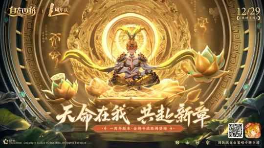 12月29日,《自在西游》正式开启了周年庆。本次周年庆以“1起西游,亿点开心”为主题,不仅带给玩家3亿福利发放,更带来跨越性的版本内容更新。周年庆版本上线了首位金阶神将——斗战胜佛,再写国民英雄孙悟空成佛后的传奇。此外,水墨风皮肤等内容,也为《自在西游》带来更多高品质的国风体验。 了解周年庆相关讯息,请戳官网:https://zzxy.yokaverse.yzz.cn/ (一) 经典再现,「声」生不息 《自在西游》手游,改编自吴承恩原版小说《西游记》,结合86版央视《西游记》电视剧进行创作,始终坚持为玩家打造精品化的“正统西游”。 本次周年庆,《自在西游》携手国内顶尖动画制作团队“两点十分动漫”,打造 “斗战胜佛”CG动画,呈现“斗战胜佛”精彩的高燃时刻。