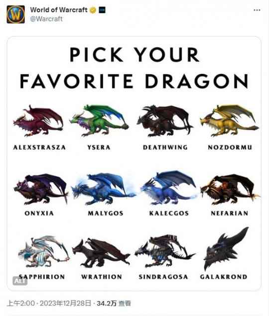 《魔兽世界》官方发布最爱龙族名“龙”选择图 玩家发现缺少多位重要角色