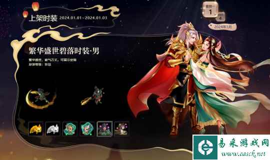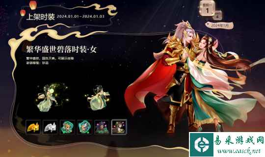 繁华盛世碧落时装·男/女:繁华盛世,豪气万丈。此时装不支持染色,可展示坐骑,彩装等级:珍品。
