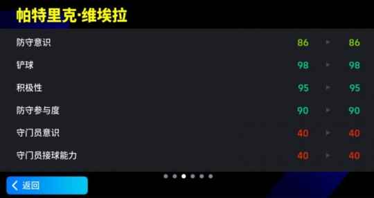 【移动堡垒铁血兽腰,增能神兽首次降临】 任何一款足球游戏中,维埃拉都是天花板级别一般的存在,在《实况足球》中也同样如此。如今以全新增能球员身份登陆实况绿茵的他,拥有着绝对顶级的实战数据:满级后的默认加点状态下,维埃拉的身体属性相关数据均得到了2点加成,铲球最高都来到了98分,积极性则同样是高水准的92分,防守参与度也保持在90分,加之92分的体能,这使得他可以在全场来回游弋,出现在任何需要他的地方!而同样不俗的双传,则是他在进攻端屡建奇功的有力保证。
