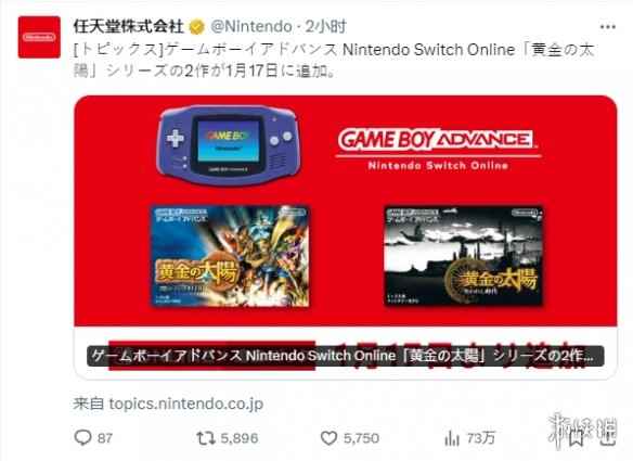 任天堂官方今天(1月12日)宣布,《黄金太阳》系列的两部作品:《黄金太阳:开启的封印》和《黄金太阳:失落的时代》将于1月17日正式加入Nintendo Switch Online高级会员的GBA游戏库,这两款作品支持存档继承和通信对战。