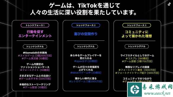 TikTok的Maayan Kotler女士提前公开了即将发布的《下一个是什么:游戏趋势报告》的部分内容。 据报告显示,截至2023年,全球约有不到34亿人在玩游戏,而TikTok的游戏相关内容的视频播放量已经超过了3万亿次(根据2022年的数据)。这表明游戏既是娱乐的核心,同时TikTok也成为了新游戏的发现和交流平台。