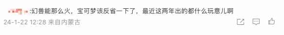 在本次特别的大量出现中,可以遇见平时只有在《宝可梦 朱》或《宝可梦 紫》其中一方才能见到的宝可梦。另外,似乎能比平时更容易遇到拥有“偶遇之证”和“未知之证”的宝可梦。在帕底亚地区四处寻觅,让许多的宝可梦成为伙伴吧。 但由于最近宝可梦风的“缝合怪”《幻兽帕鲁》的爆火,很多玩家都被吸引去玩《幻兽帕鲁》了,似乎有点不待见《宝可梦》的新活动,有河北的网友说:真不熟,帕鲁启动!还有内蒙古的网友说:幻兽能那么火,宝可梦该反省一下了,最近这两年出的都是什么玩意儿啊。