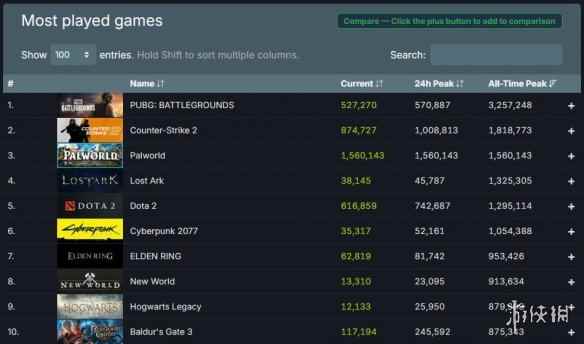 这一成绩也让《幻兽帕鲁》大幅超越了《Dota2》(峰值在线人数129万)和《失落的方舟》(峰值在线人数132万),成为了Steam史上在线人数最高的游戏TOP3!仅次于《绝地求生大逃杀》(325万)和《CS2》(181万)!