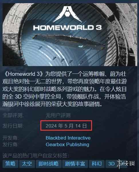 Gearbox Publishing宣布旗下科幻即时战略游戏《家园3》将延期至5月14日发售。