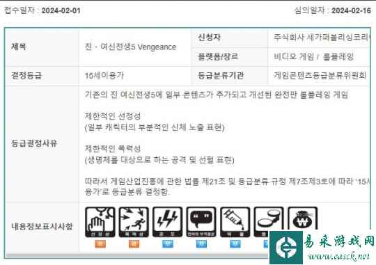 根据报道,韩国游戏分级管理委员会对《真女神转生5:Vengeance》进行了分级。游戏现已被撤下。