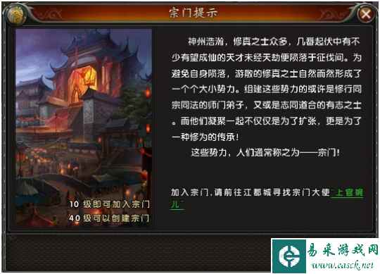 当玩家等级达到10级时便可以寻找上官婉儿加入宗门。