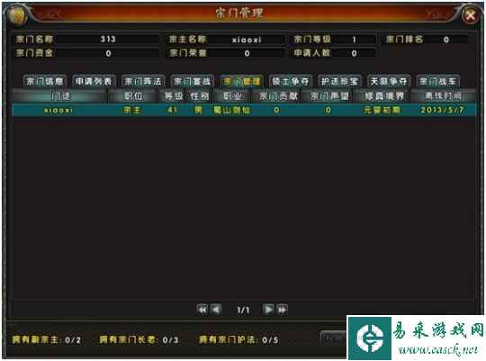 每一个宗门最多拥有2名副宗主,3名宗门长老,5名宗门护法和一名宗主。宗主可以对成员权限进行修改。 |