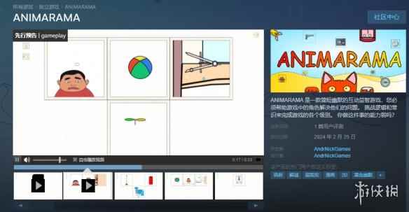 近日,一款简短幽默的互动益智游戏《ANIMARAMA》上线Steam,游戏首发6折仅售34.8元,优惠截至到3月4日。 (>>>点击进入《ANIMARAMA》Steam页面)