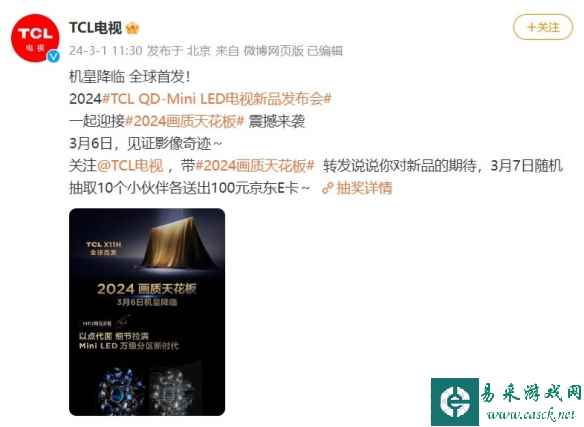TCL X11H电视新品发布会即将举行:2024画质天花板!