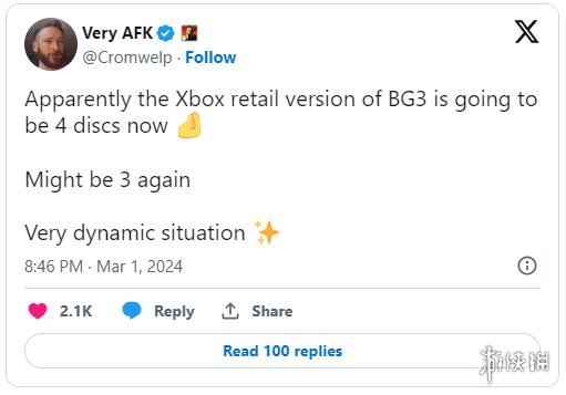 虽然《博德之门3》计划在今年晚些时候以豪华版游戏的形式推出PC/PS5/XSX/XSS的实体版游戏,但实体版游戏的发型可能面临一些问题。Larian的发行总监Michael Douse昨日在推特上透露游戏的Xbox Series X/S实体版本可能需要3或4张光盘。