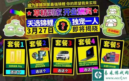 预约三重礼:天选锦鲤,独宠你一人! 少侠们在预约界面,别忘了参与“天选锦鲤”活动,选定五大锦鲤套餐中的一项作为奖励。