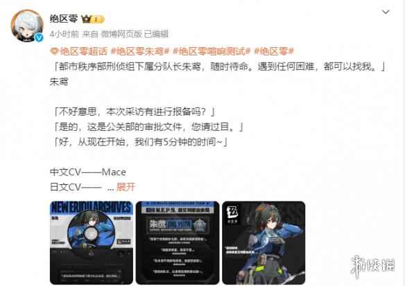 《绝区零》官方公开了新角色“朱鸢”,立绘和情报。