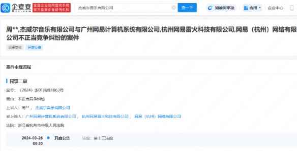 今日,“周杰伦一审败诉网易”登上热搜!有消息称,广州网易计算机系统有限公司与杰威尔音乐有限公司之间的不正当竞争纠纷案件,将于3月26日二审开庭,上诉方周杰伦、杰威尔音乐有限公司。