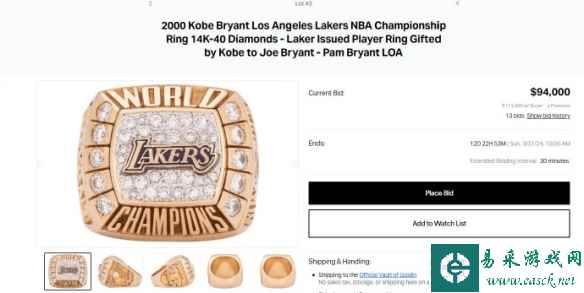 科比首枚总冠军戒指被拍卖 最高竞价已达9.4万美元!