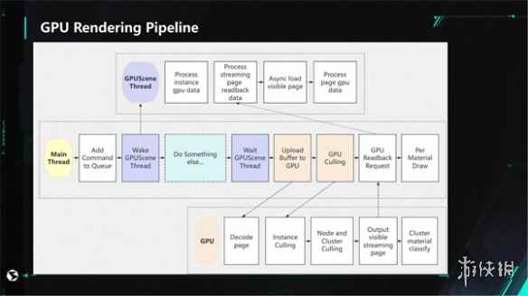 美术制作周期长?VG助力高效高精度渲染 在VG技术的强大加持下,游戏团队只需要制作高精度模型,美术人员无需再为制作LOD资源而投入额外的时间和精力,程序生成的LOD模型,其效率和效果均由于手工制作。 同时,在GDC上,黄锦寿还介绍了一套完整的GPU高效率渲染方案。把原本由 CPU 来做的裁剪、LOD 计算、排序等操作交给 GPU 来负责计算,从而降低渲染对CPU的能耗,让CPU更专注与游戏逻辑计算,这样就充分利用了GPU和CPU的时间,减少相互等待而造成的算力浪费。
