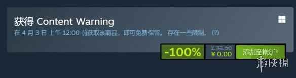近日,刚上线Steam平台一天的合作动作恐怖游戏《Content Warning》限时免费,即日起至4月3日凌晨0点,所有玩家都可以免费领取原价为33元的本作。 (>>>点击前往《Content Warning》Steam商店页面<<<)