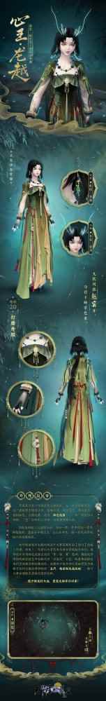 *通体淬绿,珠光宝气,龙纹栩栩如生* 采用秘色瓷器主流的“青、绿、黄”色调;裙摆处参考传统制瓷技艺中创新式的“冰裂纹”工艺;佛珠、龙角、龙纹等神龙拟人与祭祀元素加入,典雅而不失庄重。鎏金龙纹盘旋于衣袂之中,在黑夜中呼吸光闪烁,好似远古巨龙的呼唤。