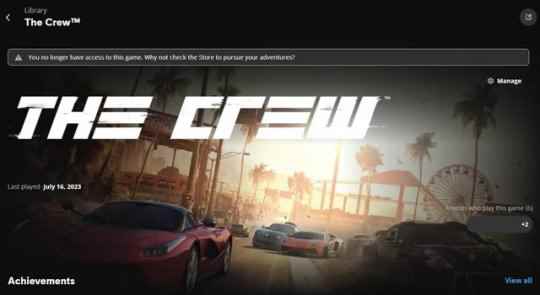 育碧关闭《飙酷车神》服务器后还将游戏从库中移除 并禁止玩家访问