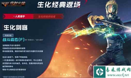 经典回归 升级上线重温青春回忆 本次版本更新后,各位CFer热切期盼返场回归的生化剑客玩法将借由全新生化地图“烈日城堡-方块乱斗”重回战场,加入全新生化地图即可体验到全新升级调整的经典角色英雄。 其中,生化剑客英雄在新建造玩法中将配备“战斗姿态”技能,当玩家使用F键使英雄处于战斗姿态时,将有对应姿势调整及按键变动使其更适应全新玩法节奏,附加技能“一闪”及“格挡”也将为玩家与生化阵营的对峙提供保障。