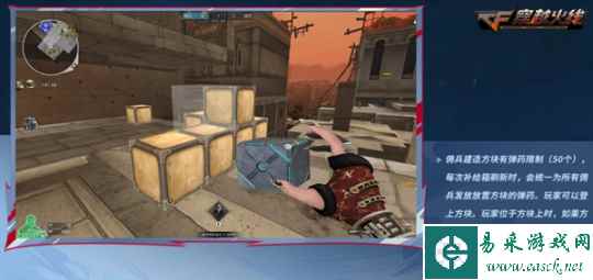 具体而言,佣兵阵营可以用特殊武器建造方块,但建造方块有弹药限制(50个),每次补给箱刷新时,会统一为所有佣兵发放放置方块的弹药。并且玩家可以登上方块,当玩家位于方块上时,如果方块被破坏,则玩家会立即坠落。