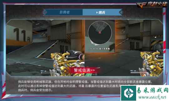 “佣兵”则需要使用枪械等武器对抗“影舞者”,并且拥有“影舞者”接近的提示。但在开枪时将积攒警戒值,当警戒值达到最大时将向全部影舞者暴露位置,位置被暴露后,“佣兵”可以通过丢弃武器的方式将最后暴露坐标停留在武器丢弃位置,以免双拳难敌四手遭到淘汰。