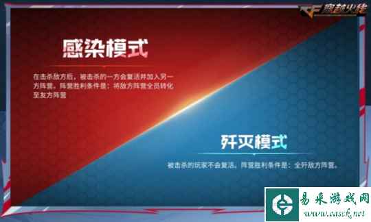 暗影模式对战还将配备感染模式及歼灭模式两种经典玩法,根据不同玩法也有不同的对应胜利条件。在感染模式玩法中,玩家在击败敌方后,被击败的一方会复活并加入另一方阵营,阵营胜利条件是将敌方阵营全员转化至友方阵营。而在歼灭模式玩法中,被击败的玩家不会复活,阵营胜利条件是全歼敌方阵营。