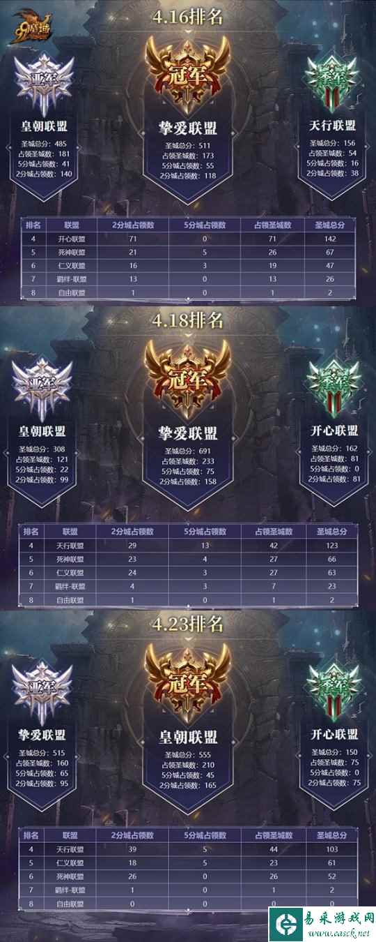 《魔域》2024神域争霸赛激战正酣,挚爱联盟与皇朝联盟两大夺冠热门巅峰对决,冠军之位悬念重重!4月25日,《魔域》2024神域争霸赛迎来联盟最终对决日!今晚20:30,游戏内将准时开启决赛直播,见证荣耀诞生!更有全民观赛活动,人人有奖,最高奖励高达18888点魔石!快来加入我们,一起为支持的联盟呐喊助威,赢取属于您的荣耀与大奖吧!