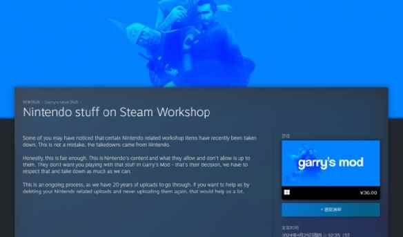 《盖瑞模组》删除20年来与任天堂相关的创意工坊作品