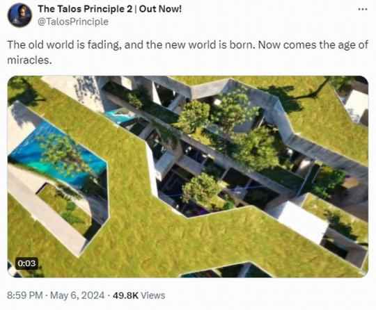 最近《塔罗斯的法则2》官方在推特上发布视频短片,并附文:“旧世界正在消逝,新世界已经诞生,奇迹时代即将到来”。随后游戏制作人Jonas Kyratzes转发该帖,并加上一句话:“我们开始了......”