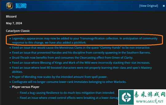 暴雪今天早上发布了大灾变怀旧服最新热修说明蓝贴,咱们只看第一条,后面的那些BUG修复就不详细解读了。