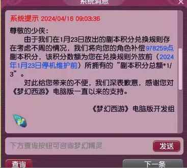 此时此刻,“玲珑宝图”再次回归,同时还有副本积分补偿,广大梦幻玩家都纷纷晒出了自己的补偿图来表达内心的喜悦,贴吧、自媒体平台都是玩家在讨论。 其中一位超级牛人,上线就收到了提示,获得97w的副本积分,他到底刷了多久的副本啊!!按照规定也就是说囤了接近300W副本积分,按照平均200点/个副本来算,他应该刷了1.5万个副本,而且都是没动过!