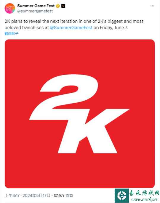 由TGA主持人Geoff Keighley主办的“夏日游戏节”定于6月7日在洛杉矶举行(北京时间6月8日早上5点),时长约为两个小时,届时会有多家厂商参与。 近日夏日游戏节官方在推特透露,知名游戏厂商2K,即将在展会上宣布新的游戏作品,这是其旗下最大也最受欢迎的系列的新作。