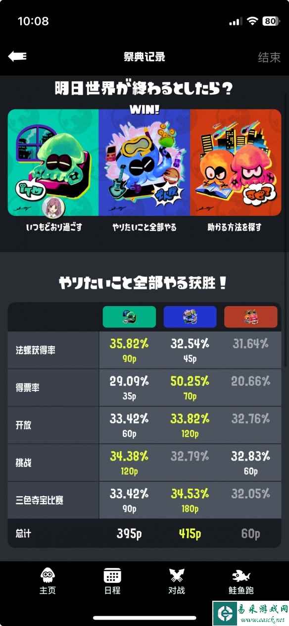 《喷射战士3》新祭典活动“如果明天世界末日你会怎么做?像往常一样度过 vs 将想做的事都完成 vs 寻找求生方法”已于昨日(5月20日)结束,祭典结果出炉,让我们一起来了解一下吧!