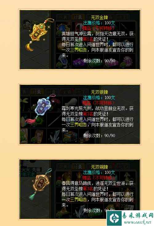 无双圣榜每周进行奖励结算,每个周日的23:59会根据本周玩家的最终排名进行一次奖励结算(如结算时仍有战斗的在进行,则仍以战斗前的排名进行结算)。只有在最后一周结算后才会获得“无双金牌/无双银牌/无双铜牌”奖励,无双金牌/无双银牌/无双铜牌不仅是游戏内的道具,还拥有对应的实物道具,游戏内道具可以给玩家增加每日首次上线时的专属荣耀提示。精灵时装、高级/中级/初级专属表现也只有在最后一周结算后才会获得赠品属性的道具,其他时段通过结算获得的为限时属性。