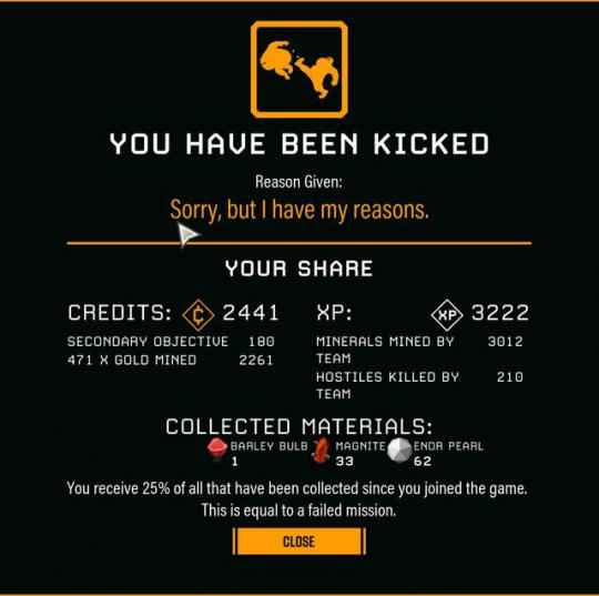 箭头正在研究《绝地潜兵2》部分玩家在即将完成任务时被房主踢出的问题