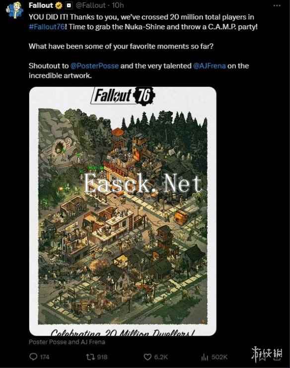 可喜可贺!B社发文庆祝《辐射76》玩家总数超过2000万