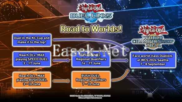 游戏王世界大赛「Yu-Gi-Oh! World Championship 2024(WCS 2024)」即将于今年9月7~8日于美国西雅图举行,Konami Digital Entertainment Limited 今日宣布,《游戏王:MASTER DUEL》、《游戏王:决斗链接》的预选赛即将于 6 月展开,决斗者们可以开始摩拳擦掌,争夺世界大赛的出场资格。