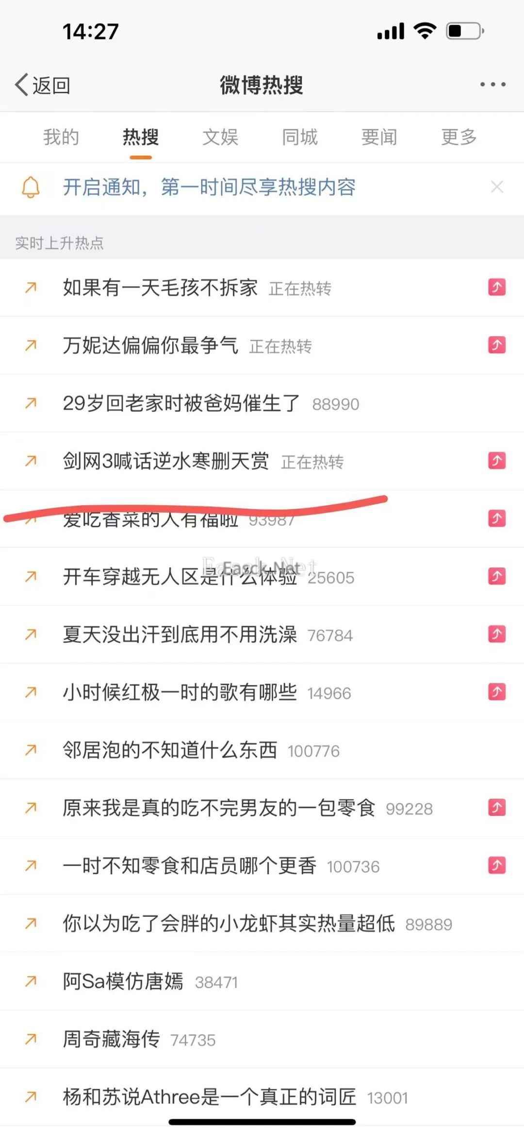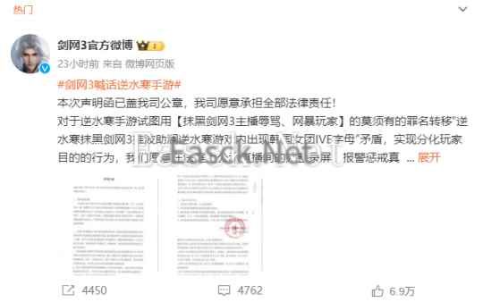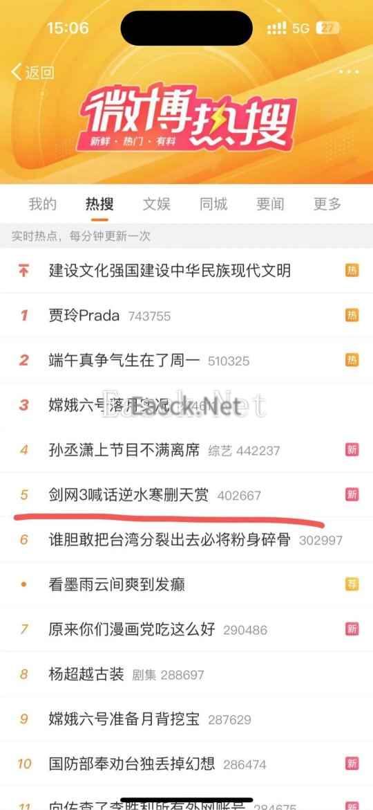 是#剑网3喊话逆水寒删天赏#话题,从13:22首发开始,话题内所有玩家都在持续为我们发声,却迟迟上不去热搜,最后直接空降热搜第五。 *这里科普一下,除了全民关注的重大事项外,正常的热搜都是上榜后随着大众的关注度缓慢提升的,这种空降是极其不合理的。