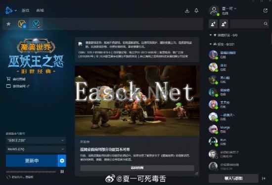 昨日国服战网客户端可以登录后,知名解说、配音夏一可分享了相关细节。 据介绍,战网客户端目前拥有《魔兽世界》和怀旧服两个图标,商城暂时不能使用。战网的好友列表也已经可以使用,可以看到很多人都处于“离线1年”的状态。怀旧服“巫妖王之怒”可以更新,也可以点击“进入游戏”,不过进去以后会显示“服务器断开”。倒是版本号终于显示了“中国正式版本”。 有关《魔兽世界》国服回归的最新动态即将于今日10:00正式公布。敬请期待。 |