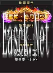 称号名称:烟雨 · 皓月当空 称号属性:物理攻击+1000,法术攻击+1000,暴击率+5.0%;