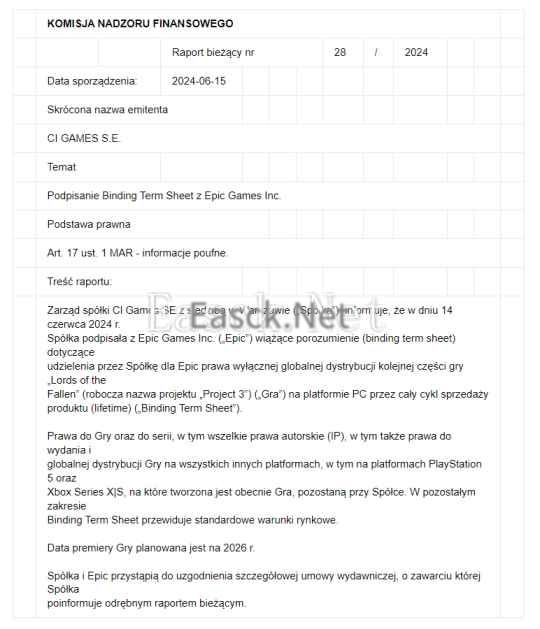 在去年《堕落之主》(The Lords of the Fallen 2)取得巨大成功后,如今,开发商 CI Games 在一则公告中宣称《堕落之主》的续作正在开发之中,预计于 2026 年发售,会登陆 PS5、Xbox Series X|S 以及 PC。据悉,《堕落之主》的续作当下代号是“Project 3”,CI Games 持有该作主机版的发行权,不过由于 CI Games 与 Epic 所签订的合约,《堕落之主》续作的 PC 版发行权完全由 epic 所拥有,也就是说倘若有需求,epic 能够让《堕落之主》续作永久性独占。然而,当前双方还在就发行的细节展开谈判。