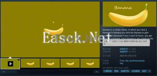 这款游戏之所以能火起来,完全仰仗Steam的饰品交易系统。玩家每体验《Banana》18个小时,就有概率通过点击鼠标获得稀有饰品。通过交易饰品,玩家能够从中获得真正的收益。由于《Banana》是款免费游戏,大小不过100M,所以基本称得上是零门槛。