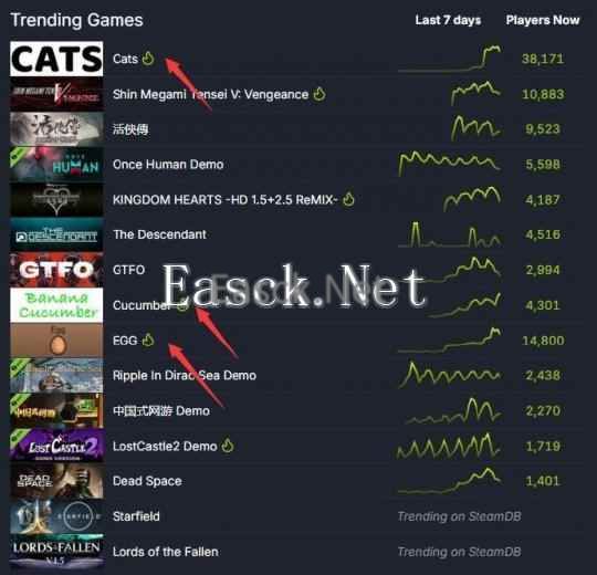 更加夸张的是,《Banana》火起来以后,许多模仿该玩法(暂且当它是款游戏吧)的作品开始冒头。例如《Egg》、《Cats》、《Banana Cucumber》等。离谱的地方在于,这些跟风作品在独立游戏中也算是颇有热度的了。