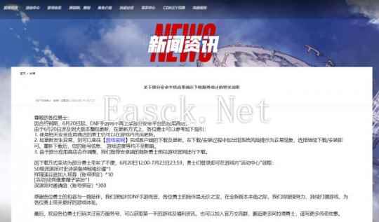 该声明表示:因合约到期,6月20日起,DNF手游将不再上架部分安卓平台的应用商店,过去使用相关安卓应用商店的玩家可直接在游戏内更新。而拥有重新下载客户端需求的安卓玩家/萌新,推荐前往游戏官网进行下载。