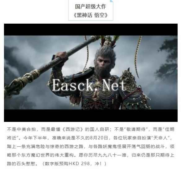 PS港服宣传《黑神话》:国产超级大作只需298港币 冲!