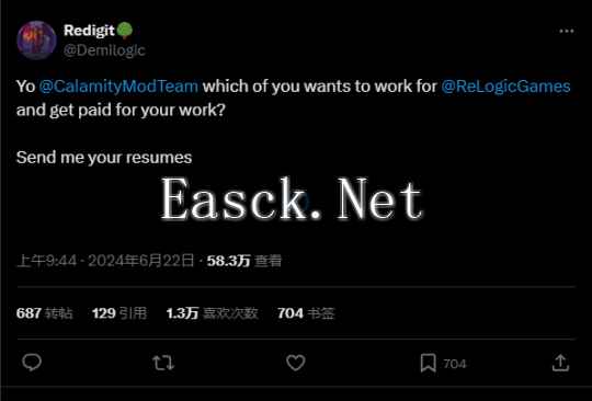 近日《泰拉瑞亚》的开发者/创造者,也就是Re-Logic的总裁Andrew“Redigit”Spinks,在其个人推特上抛出了“橄榄枝”。Redigit十分随心的说道:“Calamity Mod Team的各位,你们当中谁想为Re-Logic Games工作并因此获得报酬?”