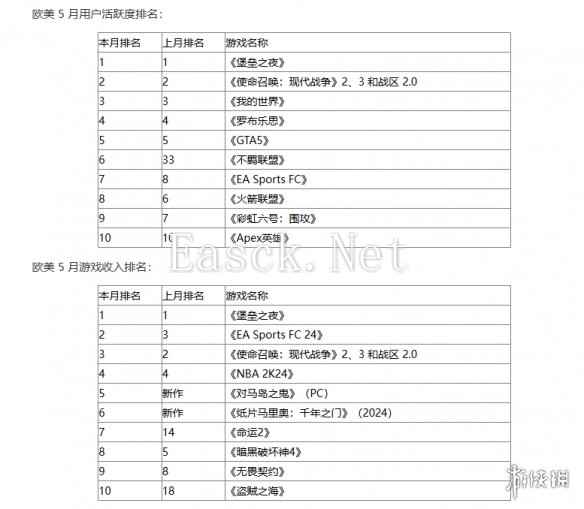 欧美5月份双榜第一仍是《堡垒之夜》 育碧热度大增