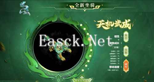 不仅如此,天机武威自带强大的飞行功能,更有隐藏惊喜道友敬请期待!坐骑的相性为金,天生技能:天生神力、神圣之光、神龙罩。飞升前总成长:330,血量成长:110,法力成长:75,速度成长:60,物攻成长:10,法攻成长:75。